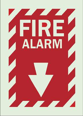 Glow-In-The-Dark Fire and Exit Signs: FIRE ALARM (W/PICTO), Used as guide for proper emergency escapes and to indicate flammable materials, Each
