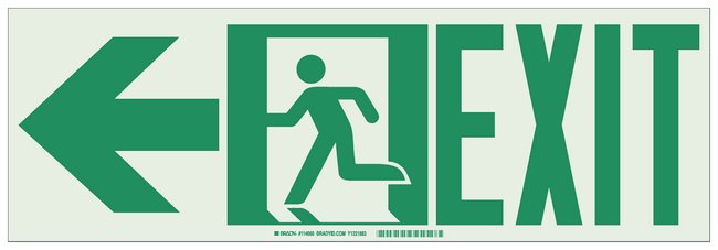 Glowing Safety Sign: EXIT, left arrow and pictogram, Each