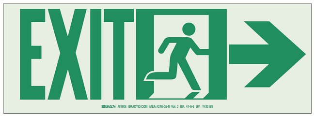 Glowing Safety Sign: EXIT, right arrow and pictogram, Each