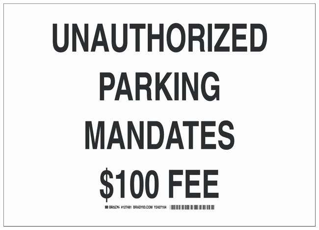 Handicap Parking Sign: UNAUTHORIZED PARKING MANDATES $100 FEE, Each