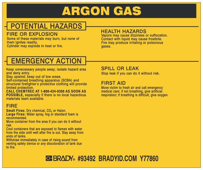 Hazardous Material Label: ARGON GAS, Pack of 25