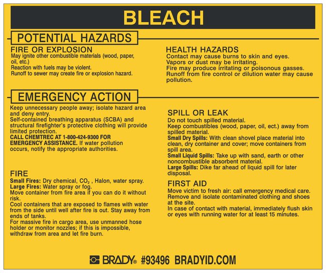 Provide workers with all of the chemical information needed for hazardous materials they may encounter. Brady™ Hazardous Material Labels are made of vinyl and display text in black on yellow.