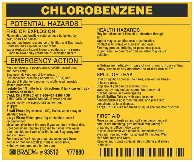 Hazardous Material Label: CHLOROBENZENE, Pack of 25