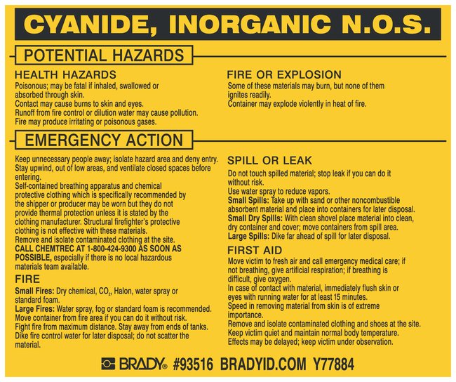 Provide workers with all of the chemical information needed for hazardous materials they may encounter. Brady™ Hazardous Material Labels are made of vinyl and display text in black on yellow.