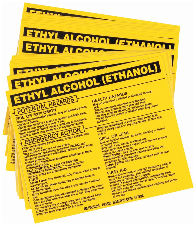 Hazardous Material Label: ETHYL ALCOHOL (ETHANOL), Pack of 25