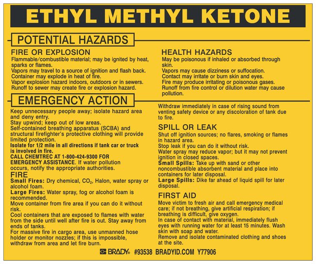Hazardous Material Label: ETHYL METHYL KETONE, Pack of 25
