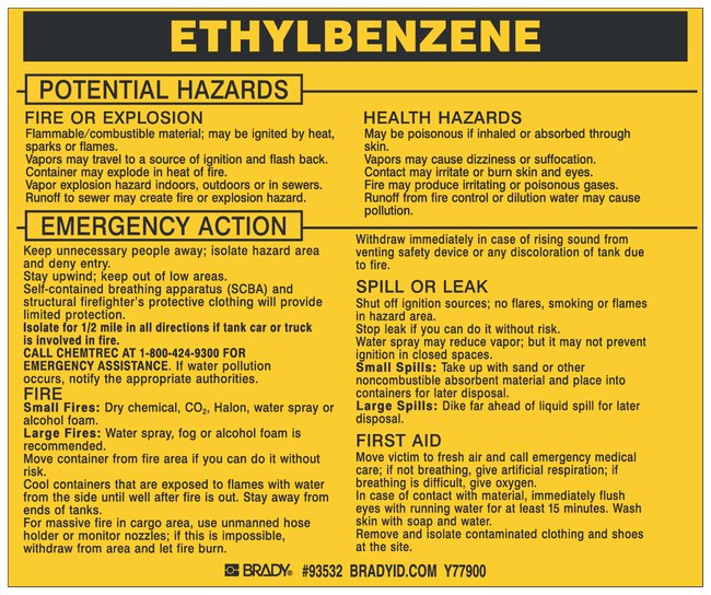 Hazardous Material Label: ETHYLBENZENE, Pack of 25