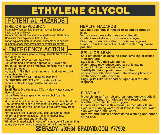 Hazardous Material Label: ETHYLENE GLYCOL, Pack of 25