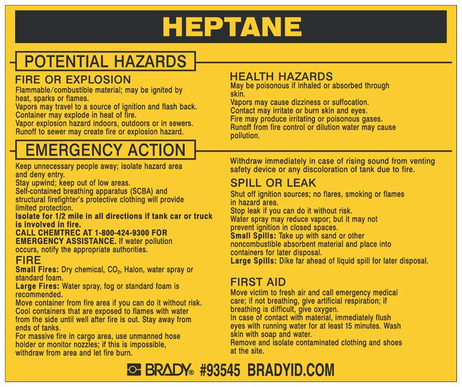 Provide workers with all of the chemical information needed for hazardous materials they may encounter. Brady™ Hazardous Material Labels are made of vinyl and display text in black on yellow.
