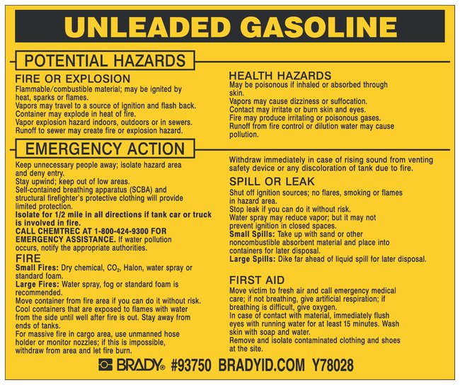 Hazardous Material Label: UNLEADED GASOLINE, Pack of 25