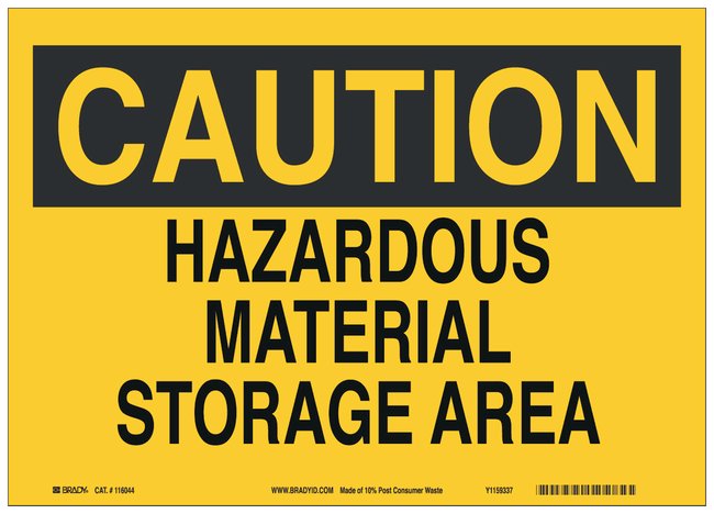 High Density Polypropylene Caution Sign: HAZARDOUS MATERIAL STORAGE AREA, Each