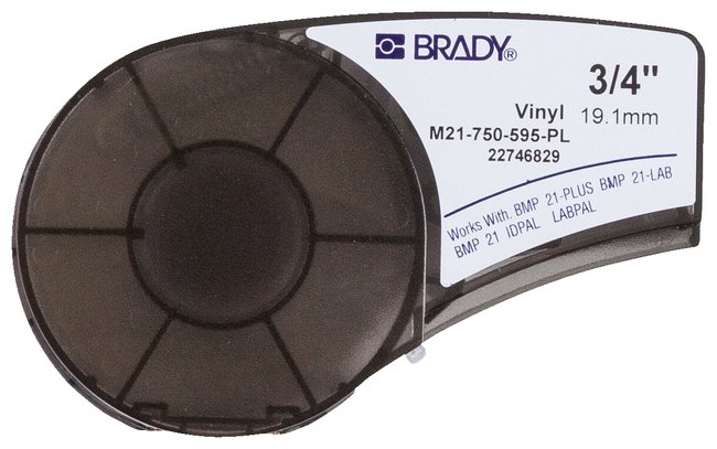 Adheres to irregular, rough and curved surfacesFor use with BMP™21, BMP21-LAB, BMP21-PLUS, IDPal™, LabPal™ printersMade of 8-10 year indoor/outdoor materialMatte finish with permanent adhesiveStands up to grease, oil and most industrial chemicalsAvailable in various sizes and colorsApplications:General identification, laboratory identification, panel identification, panel labels, plant labels, safety labels, Lean/5S and visual workplace labels, pipe marking, tool labeling, equipment labeling and outdoor labeling.†Compatible with the BMP™21-PLUS printer only.ComplianceRoHS Compliant, WEEE, EU REACH SVHC