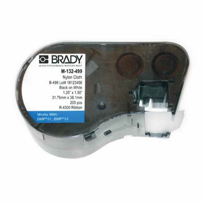 Label Maker Cartridge: Nylon Cloth (B-499) wrap-around labels are highly pliable to conform to tightly curved surfaces such as wire and cable.