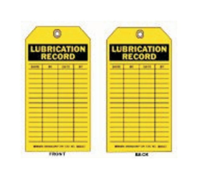 Lubrication Record Inspection Tag is a durable Material Control tag to inform employees of the inspection history and status of equipment or materials.