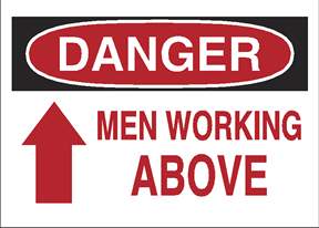 Machine and Operational Signs: DANGER - MEN WORKING ABOVE (w/UP ARROW), Each