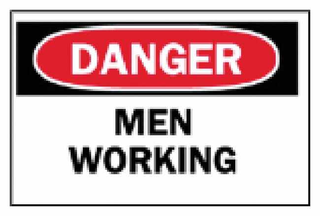 ldquo;Men Working” Machine and Operational Sign B-302 is an high performance pressure sensitive safety sign, and is surface printed polyester with a polyester overlaminate.