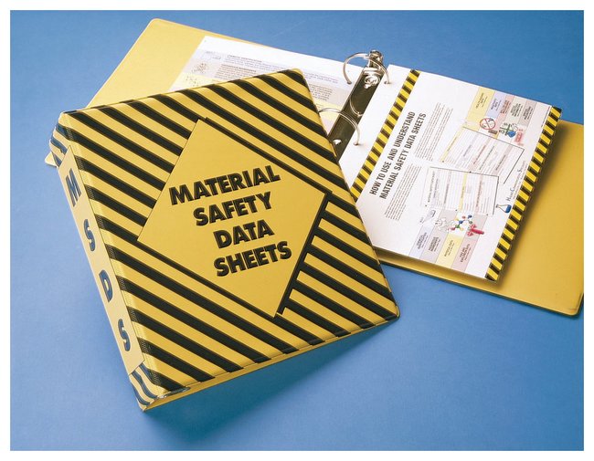 Striped MSDS BinderHigh-quality vinyl binder neatly organizes and protects MSDSsSafety striped for high visibilityInside pocket holds additional informationSpine is 2 in. and holds up to 400 MSDSsMSDS User's GuideIncluded with purchase of MSDS BinderFeatures colorful illustrations and explanationsIdeal for use as employee handout to help met MSDS training requirementsLaminated and 3-hole punched