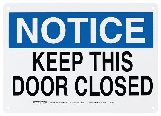 ldquo;Notice: Keep This Door Closed” Sign, Each