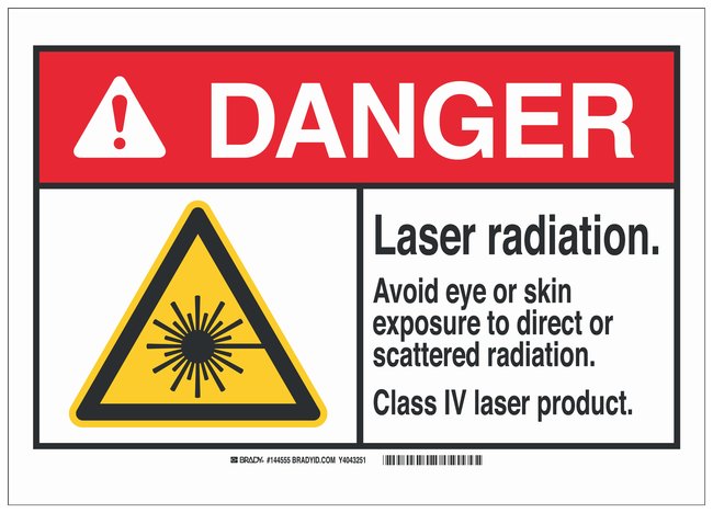 Polyester Adhesive ANSI Danger Sign: LASER RADIATION...CLASS IV LASER PRODUCT, Each