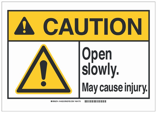 Polyester Adhesive Door and Pathway Sign: OPEN SLOWLY. MAY CAUSE INJURY, Each