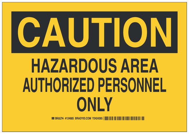 Polyester Adhesive Warning Sign: HAZARDOUS AREA AUTHORIZED PERSONNEL ONLY, Each