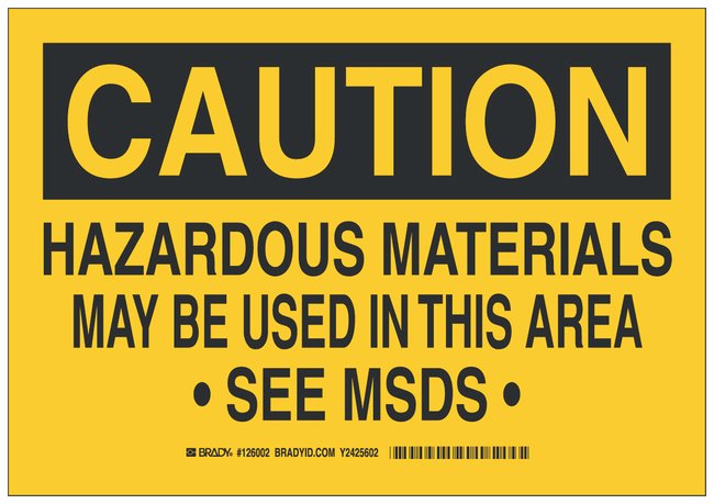 Polyester Adhesive Warning Sign: HAZARDOUS MATERIALS MAY BE USED IN THIS AREA SEE MSDS, Each