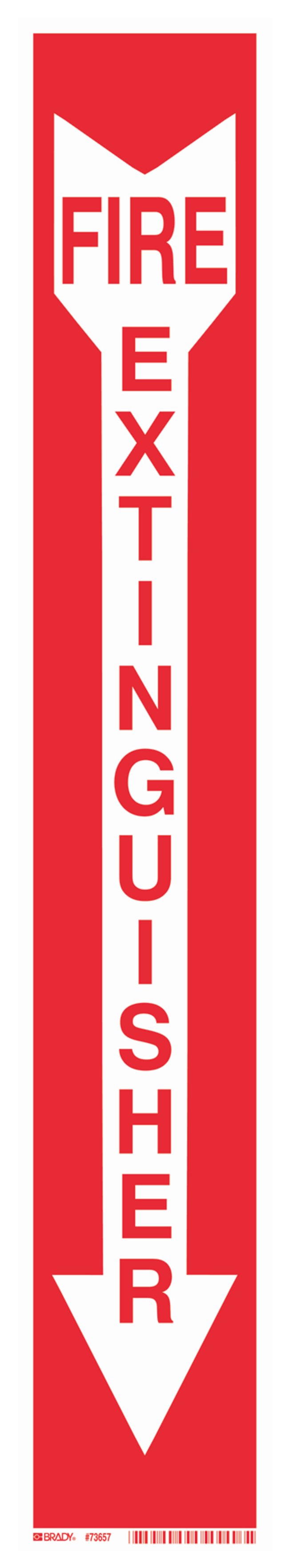 Polyester BradyGlo™ Fire Extinguisher Sign: FIRE EXTINGUISHER, Red on White, Arrow, Each