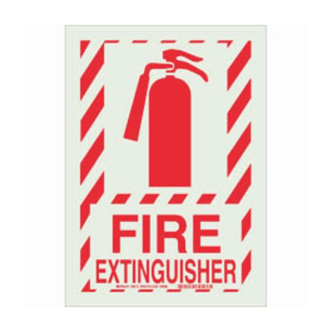 Polyester BradyGlo™ Fire Extinguisher Sign: FIRE EXTINGUISHER, Red on White, pictogram, Each