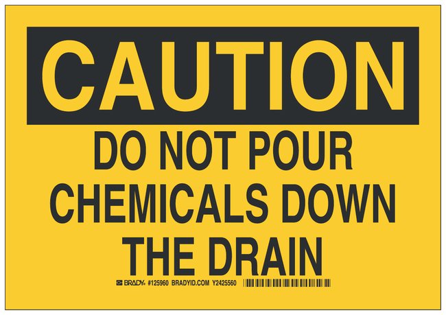 Polyester Caution Sign: DO NOT POUR CHEMICALS DOWN THE DRAIN, Each