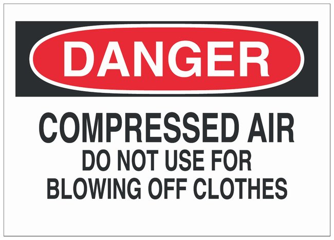 Polyester Danger Sign: COMPRESSED AIR DO NOT USE FOR BLOWING OFF CLOTHES, Each