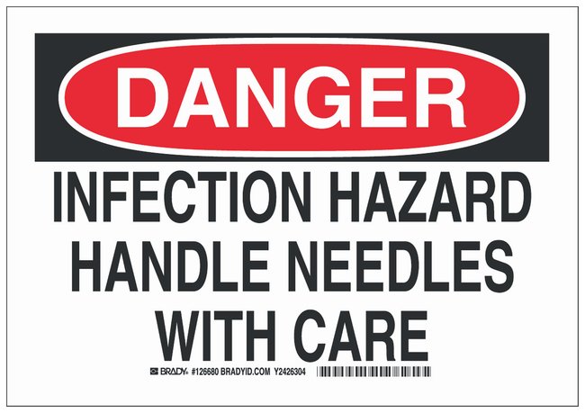 Polyester Danger Sign: INFECTION HAZARD HANDLE NEEDLES WITH CARE, Each