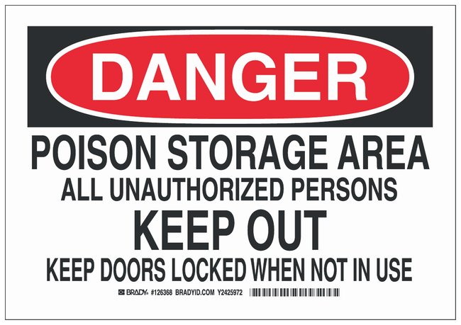 Polyester Danger Sign: POISON STORAGE AREA ALL UNAUTHORIZED PERSONS KEEP OUT KEEP DOORS LOCKED WHEN NOT IN USE, Each