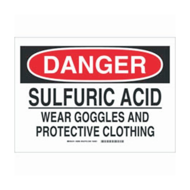 Polyester Danger Sign: SULFURIC ACID WEAR GOGGLES AND PROTECTIVE CLOTHING, Each