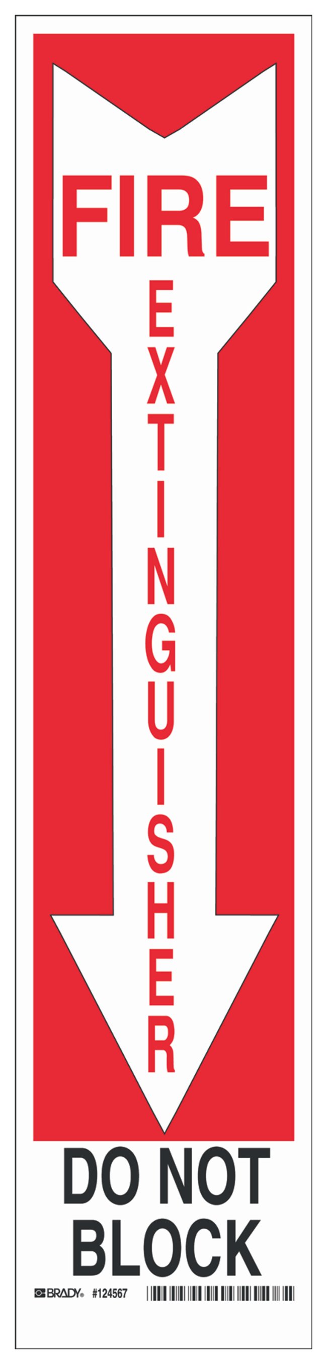 Improve workplace safety with proper signage and markings. This Brady™ self-adhesive mounted sign is a durable, clear and effective tool to mark fire extinguisher locations.
