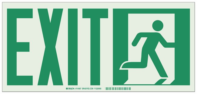 Polyester Glowing Safety Guidance Sign: EXIT, running man right pictogram, Each