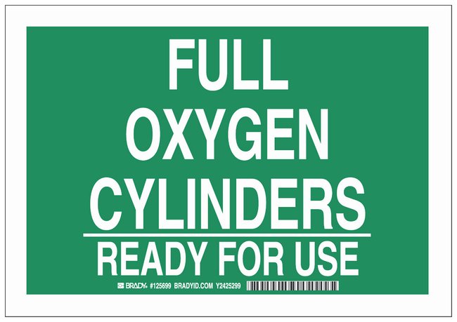 Polyester Warning Sign: FULL OXYGEN CYLINDERS READY FOR USE, Each