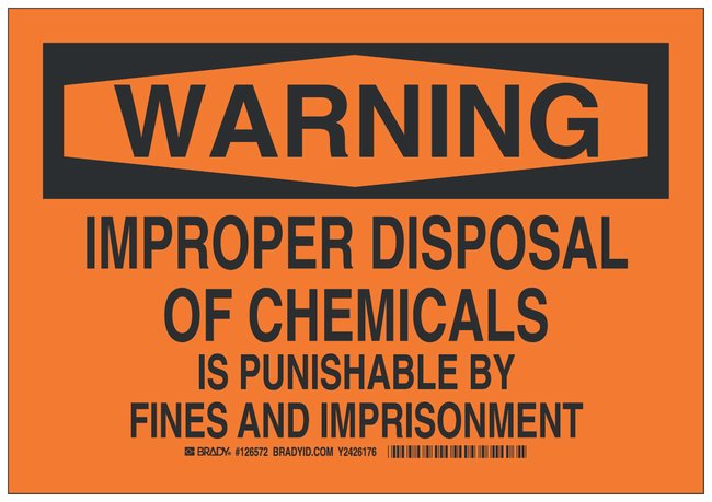 Polyester Warning Sign: IMPROPER DISPOSAL OF CHEMICALS IS PUNISHABLE BY FINES AND IMPRISONMENT, Each