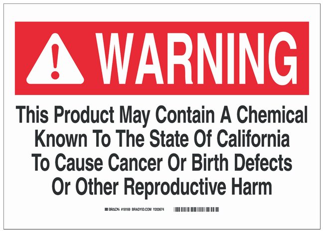 Polyester Warning Sign: THIS PRODUCT MAY CONTAIN A CHEMICAL KNOWN TO THE STATE OF CALIFORNIA TO CAUSE CANCER OR BIRTH DEFECTS OR OTHER REPRODUCTIVE HARM, Each
