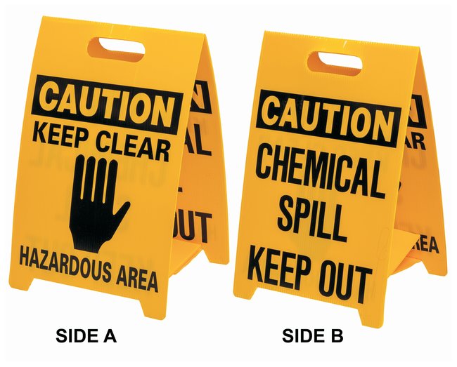 Polypropylene Caution Floor stand: CHEMICAL SPILL KEEP OUT, Each