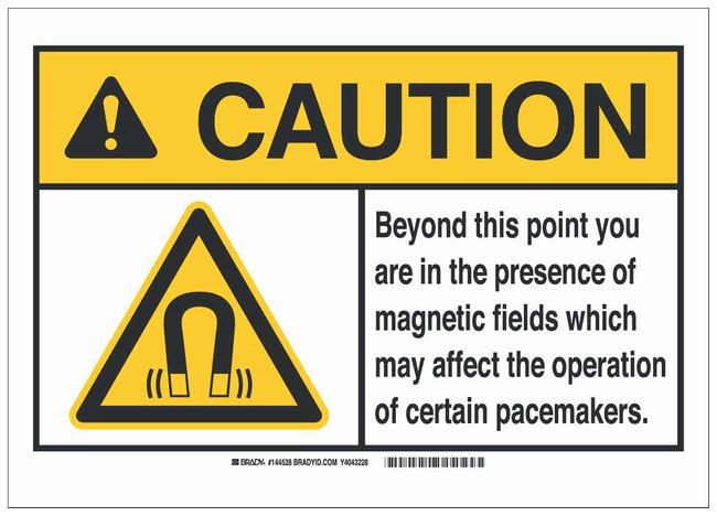 Polystyrene ANSI Caution Sign: BEYOND THIS POINT...MAY AFFECT THE OPERATION OF CERTAIN PACEMAKERS, Each