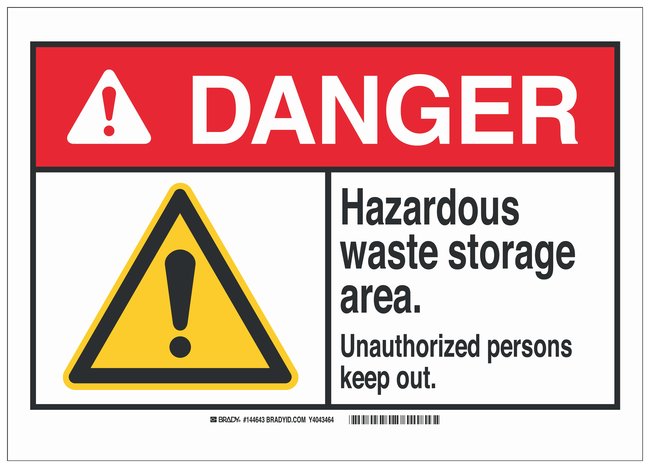 Polystyrene ANSI Danger Sign: HAZARDOUS WASTE STORAGE AREA. UNAUTHORIZED PERSONS KEEP OUT, Each