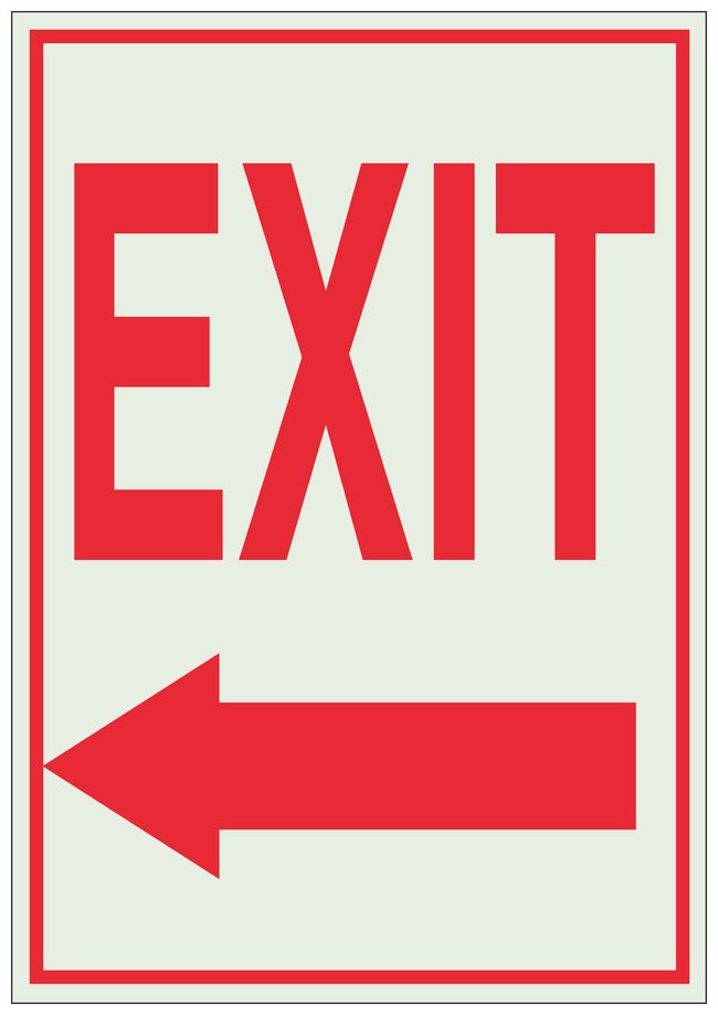 Polystyrene BradyGlo™ Exit & Entrance Sign: EXIT, left arrow, Each