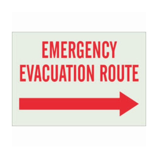 Polystyrene BradyGlo™ Fire Emergency & Disaster Sign: EMERGENCY EVACUATION ROUTE, right arrow, Each