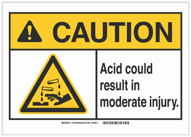 Polystyrene Caution Sign: ACID. COULD RESULT IN MODERATE INJURY, Each