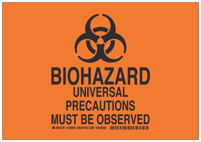 Polystyrene Caution Sign: BIOHAZARD UNIVERSAL PRECAUTIONS MUST BE OBSERVED, Each