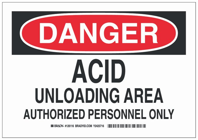 Polystyrene Danger Sign: ACID UNLOADING AREA AUTHORIZED PERSONNEL ONLY, Each