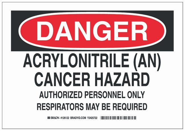 Polystyrene Danger Sign: ACRYLONITRILE (AN) CANCER HAZARD AUTHORIZED PERSONNEL ONLY RESPIRATORS MAY BE REQUIRED, Each