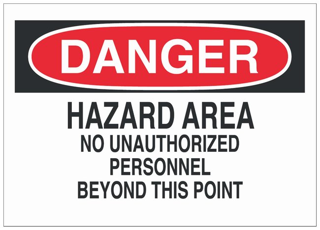 Polystyrene Danger Sign: HAZARD AREA NO UNAUTHORIZED PERSONNEL BEYOND THIS POINT, Each