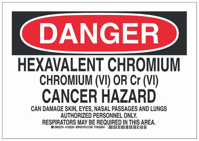 Polystyrene Danger Sign: HEXAVALENT CHROMIUM … AUTHORIZED PERSONNEL ONLY. RESPIRATORS MAY BE REQUIRED IN THIS AREA, Each