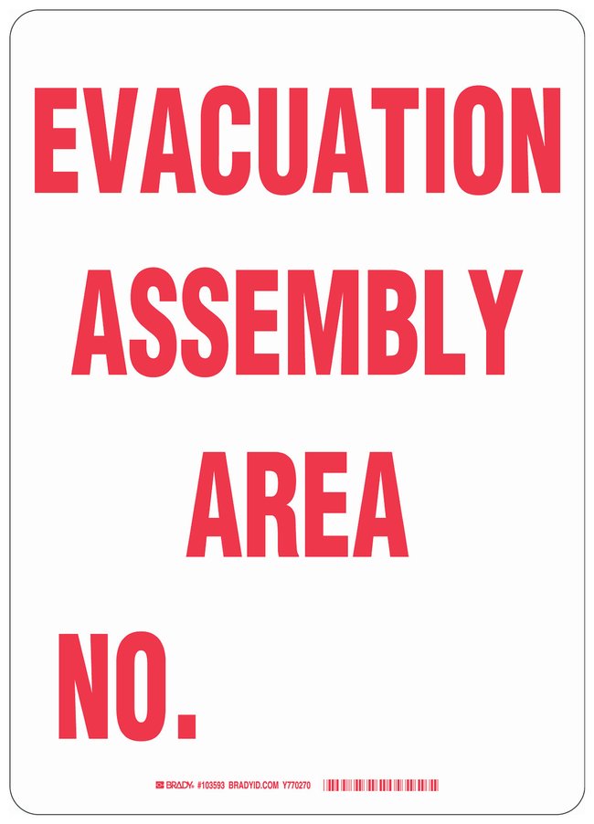 Polystyrene Fire Emergency & Disaster Sign: EVACUATION ASSEMBLY AREA No, Each